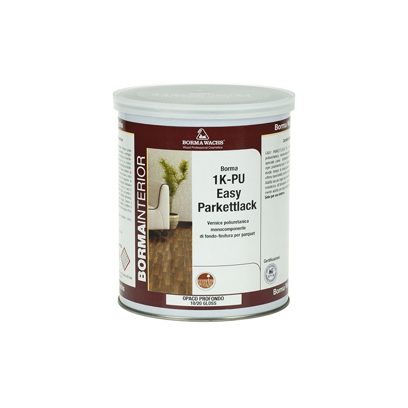 It is a one-component polyurethane-based varnish ready for use, special as a primer-finish treatment for any wooden flooring, easy and fast. Fast drying, it is characterized by excellent workability even in industrial applications. To increase the covering of the covering, it is possible, even if not strictly necessary, to apply the Borma Parkettlack 2k primer as a preliminary layer.